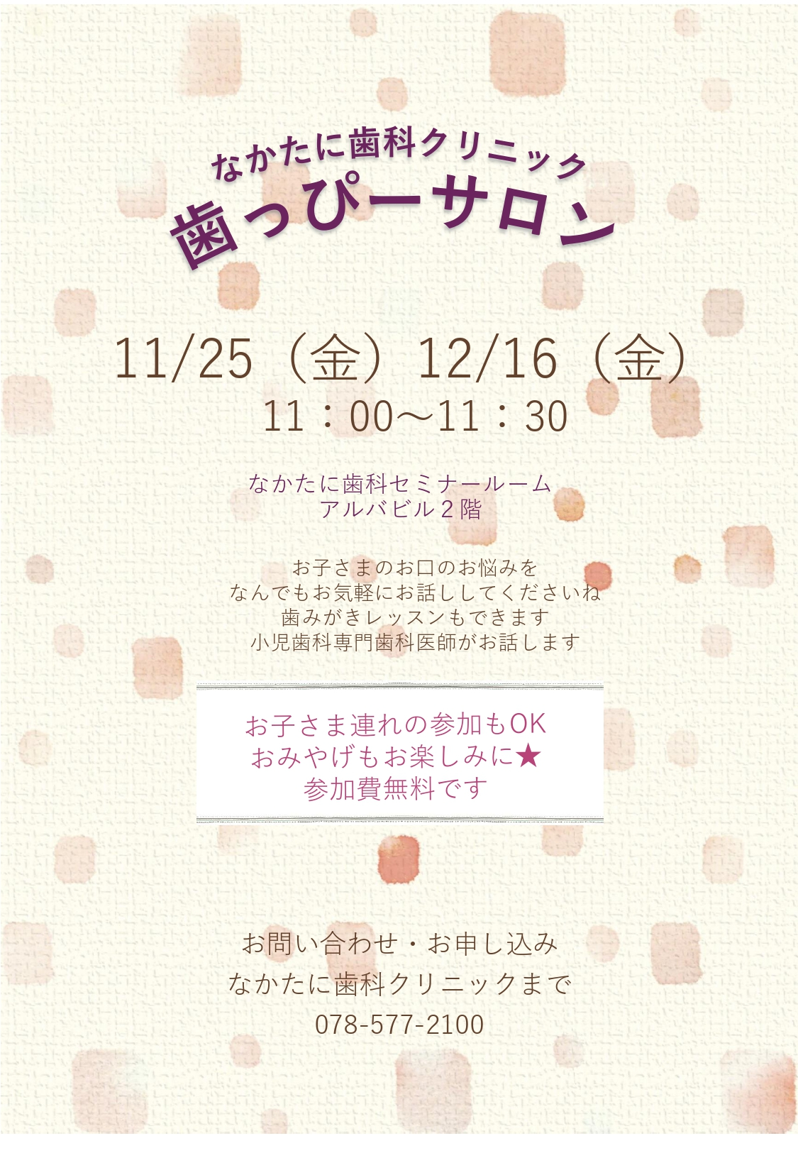歯っぴ―サロン/11月25日(金)・12月16日(金)
