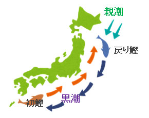 鰹(かつお)は暖かい海を好み、黒潮の流れに沿って春先に北上し、秋に南下していくという季節性の回遊をしています。