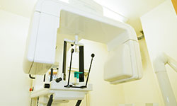従来の2Dレントゲンに加え、歯科用CTを導入しています。インプラントや抜歯、矯正歯科などの治療に用い、三次元の立体的な断層画像により骨の形や神経の位置など正確に診断できます。より安全で精密な歯科治療のご提供が可能です。