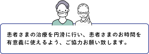 予約時間に遅れてお越しになると、予定通りの治療が出来ず、次の患者様に対してご迷惑がかかると思われる場合、