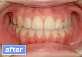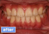 | 治療前 | 顎に対して歯が小さいため、全体的に隙間があり、上顎の前歯が1本内側に入っていました。 |
