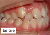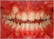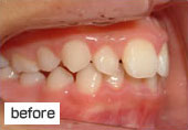 | 治療前 | 受け口で八重歯と下顎の歯のガタガタが軽度にありました。 |