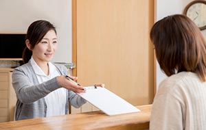 ご予約いただきました日時にご来院いただきます。受付で問診表をお渡ししますのでご記入ください。こちらのご記入内容はカウンセリングでご使用させて頂きます。